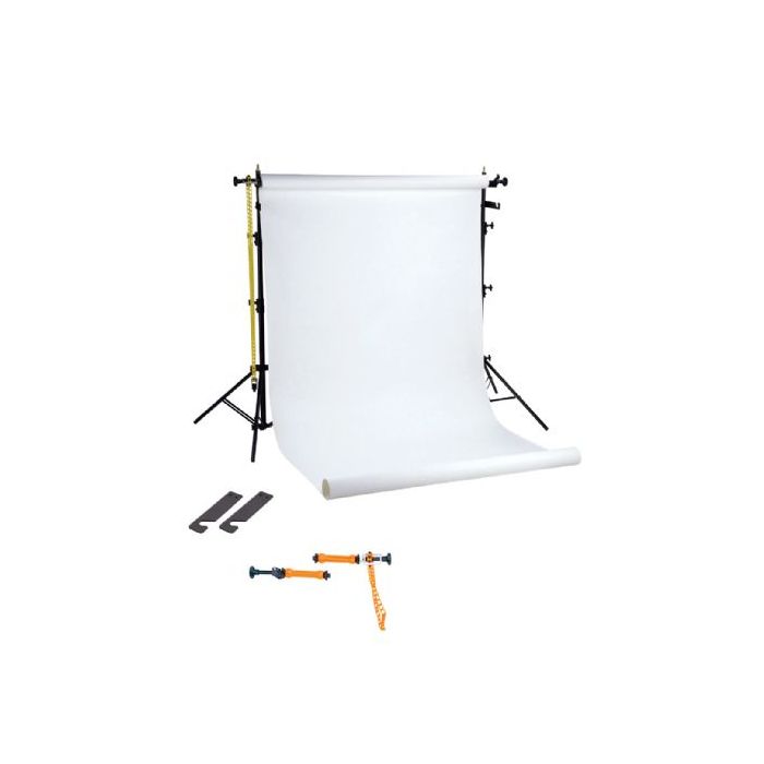 Met deze complete achtergrondbundel verander je je studio in een uiterst efficiënte productieruimte. Of je nu werkt met één, twee of meerdere rollen papier of vinyl: je hebt alles in huis om snel, stabiel en professioneel te kunnen werken bij elke fotosessie.
