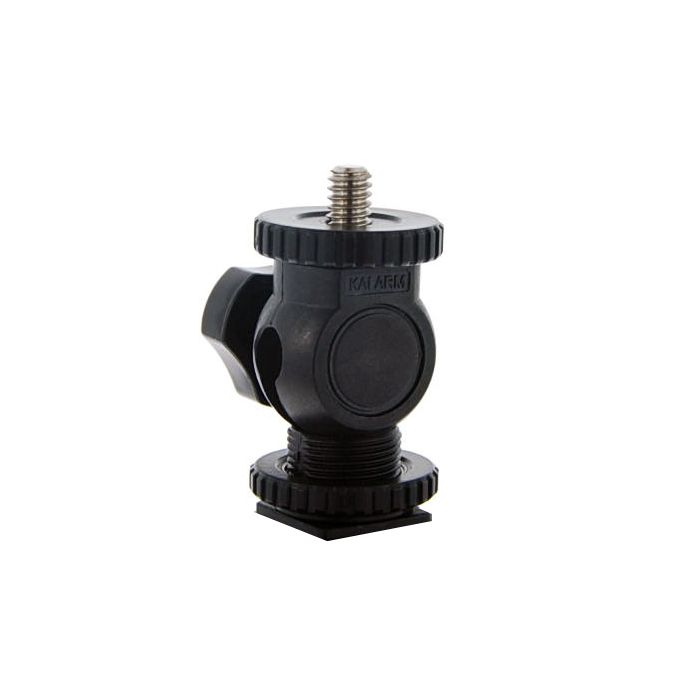De bovenkant van het tilting bracket is uitgerust met een universele 1/4" male schroefdraad, terwijl de onderkant een 1/4" female schroefdraad heeft. Dit maakt het super eenvoudig om het tilting bracket op elk universeel lampstatief te installeren. Ook de aansluiting op de hotshoe van jouw camera verloopt probleemloos, waardoor je snel en simpel accessoires kunt toevoegen voor een geoptimaliseerde fotosessie.