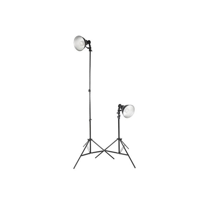 Bij deze set worden de volgende accessoires meegeleverd: 2 lamphouders (LHER-2040), 2 reflectoren (ø 19,5 cm), 2 spiraallampen (40W), en 2 statieven (LS-804 van 2 meter). Met deze uitgebreide levering bezit je alle essentiele benodigdheden voor elke lichtopstelling.
