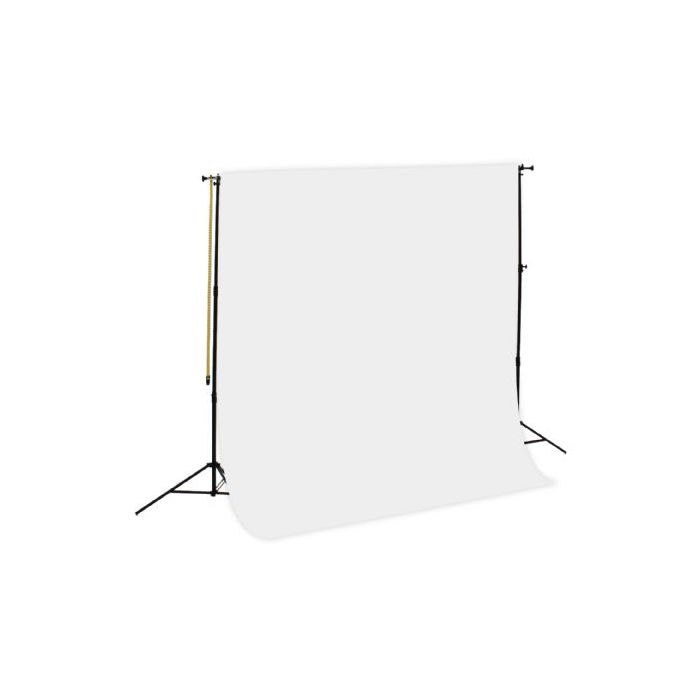 Dit achtergrondsysteem belichaamt robuustheid en flexibiliteit. De extra lange statieven bieden meer bereik en stabiliteit, speciaal bij gebruik van brede achtergrondrollen. Het verstelbare kettingsysteem maakt het kinderlijk eenvoudig om de achtergrond naar elke gewenste hoogte op te rollen. Handig als je snel wilt wisselen tussen verschillende achtergronden of met een specifiek lichtspel aan de slag wilt. De rolhouder zonder ketting is subtiel ontworpen met een draaiknop, waarmee je de afrolweerstand van het papier aanpast aan jouw persoonlijke voorkeuren. Geschikt voor de precisiewerk die elke fotograaf verlangt. Op de laatste afbeelding zie je deze handige draaiknop. De levering is compleet, zodat je meteen aan de slag kunt. Bij aanschaf ontvang je: