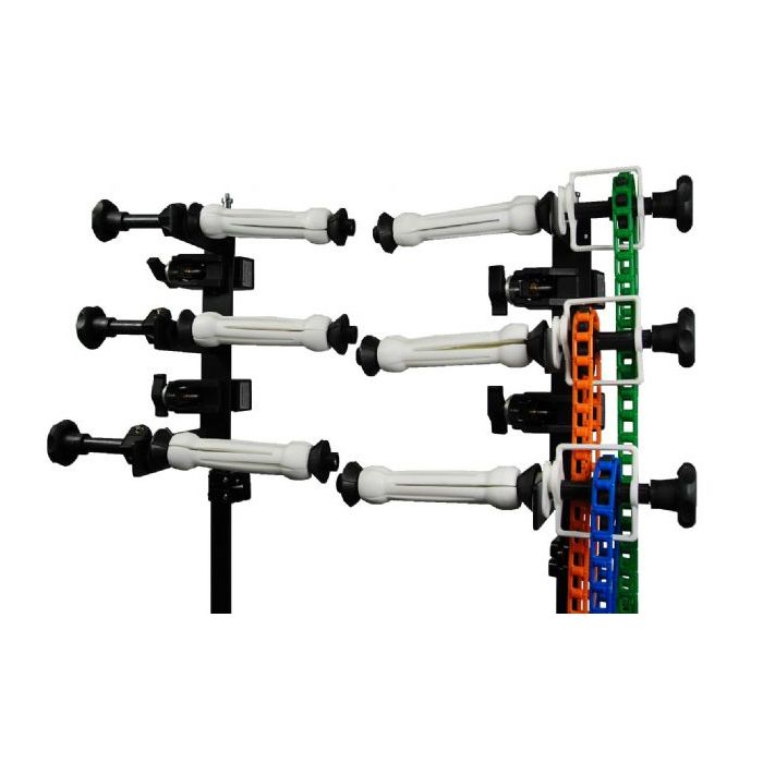 De veelzijdige Linkstar Background Support maakt het ophangen en moeiteloos wisselen van maximaal 3 achtergronden een fluitje van een cent. Dit systeem monteer je eenvoudig aan de muur of het plafond, waarna je de rollen plaatst. De rolhouder schuif je simpelweg in een buis of koker van de achtergrondrol en draai je vast. Zo zet de houder uit voor stevige bevestiging. Met de bijgeleverde kettingen wissel je probleemloos van rollen. Het systeem plaats je op iedere gewenste breedte en bevestig je op minimaal 10 cm van het plafond. Dankzij de bijgeleverde geleiders blijven de kettingen netjes op hun plek hangen.