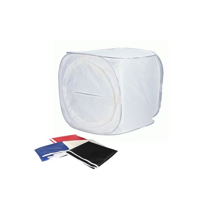 De opnamebox is volledig opvouwbaar en wordt geleverd met een handige opbergtas. Daardoor neem je hem makkelijk mee naar een andere locatie en berg je hem compact op na gebruik.