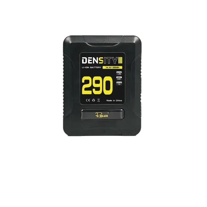 De Rolux V-Mount Accu Density III 290Wh levert krachtige, stabiele stroom voor lange draaidagen. Met meerdere uitgangen, USB-C tot 65W en hoge capaciteit is hij ideaal voor professioneel camera- en videowerk.