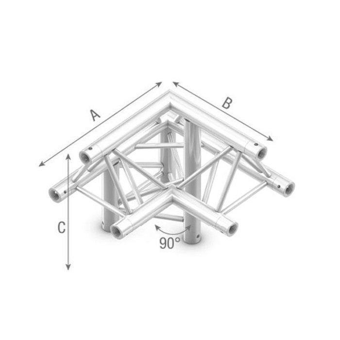 Dit hoekstuk is uitgerust met een stevige trusshoek van 90°, speciaal ontworpen om je trussconstructies in diverse opstellingen te verwezenlijken en te versterken, zonder in te boeten op veiligheid of duurzaamheid.