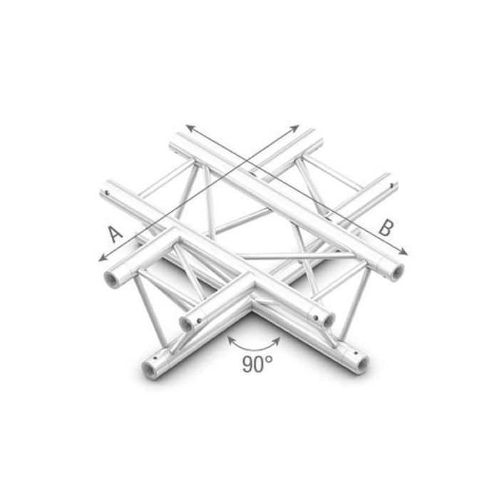 Dit veelzijdige driehoekspant is ontworpen als een 4-wegs horizontale truss, waardoor het eindeloze verbindingsmogelijkheden biedt. Creëer eenvoudig complexe configuraties zonder in te boeten op stabiliteit. De hoek van 90° waarborgt een veilige opstelling.