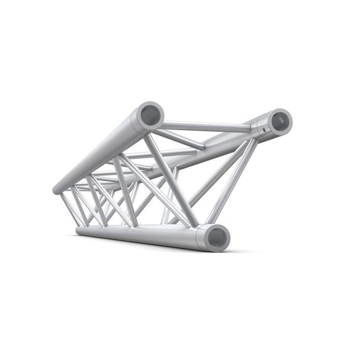 De driehoekige spantstructuur heeft een hoofdbuis met een diameter van 32 mm en een bracebuis met een diameter van 10 mm. Ondanks het gewicht van slechts 9,2 kg levert deze trussbalk indrukwekkende prestaties. Uitermate geschikt voor zowel kleine als middelgrote evenementen, en door zijn zilveren kleur sluit hij naadloos aan op elke stijl, wat hem perfect maakt voor je volgende show of event.