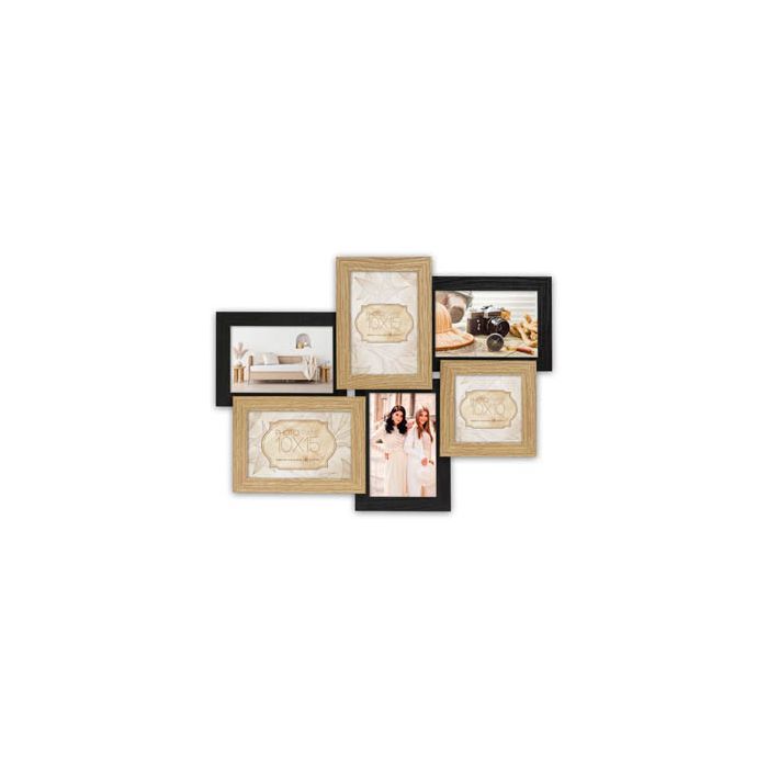 Geef je herinneringen de plek die ze verdienen met de Zep Fotolijst DT553W Locarno Zwart. Deze stijlvolle fotocollage biedt ruimte voor 6 foto's van 5x10x15 cm en een extra foto van 10x10 cm. De Locarno houten lijst, in elegante bruine en zwarte kleuren, vormt een unieke meervoudige fotolijst voor wandmontage. Met zijn horizontale en verticale overlappende lijsten creëert hij een dynamische presentatie op verschillende niveaus, perfect voor zowel thuis als op kantoor. De totale afmetingen, inclusief de lijst, zijn maar liefst 47 x 35 cm, waardoor je foto's direct in het oog springen.