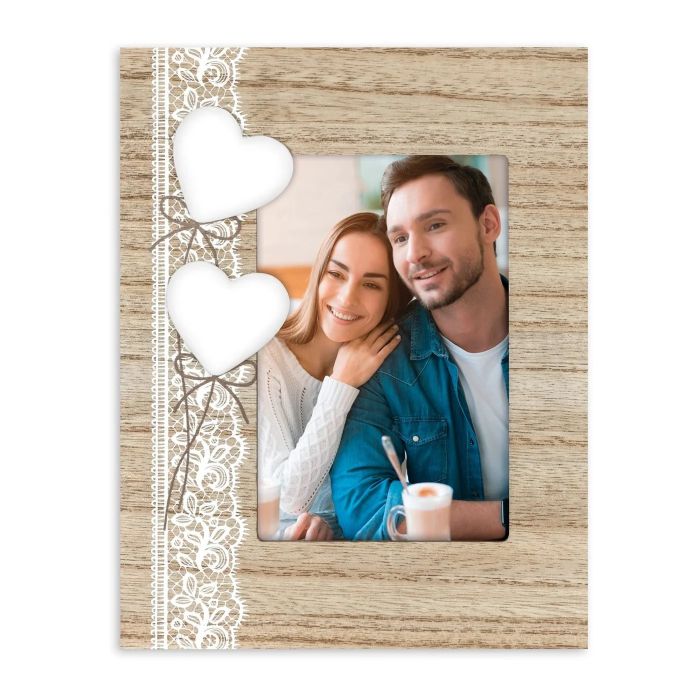 Geef je mooiste herinnering een zachte, romantische uitstraling met de Zep Fotolijst WH9446 Dafne Vertical 10x15 cm. Deze fotolijst combineert een lichte houtlook met verfijnde details, zoals kanten accenten en decoratieve hartjes. Perfect voor een foto met een liefdesthema, een bijzonder moment samen of een dierbare herinnering.