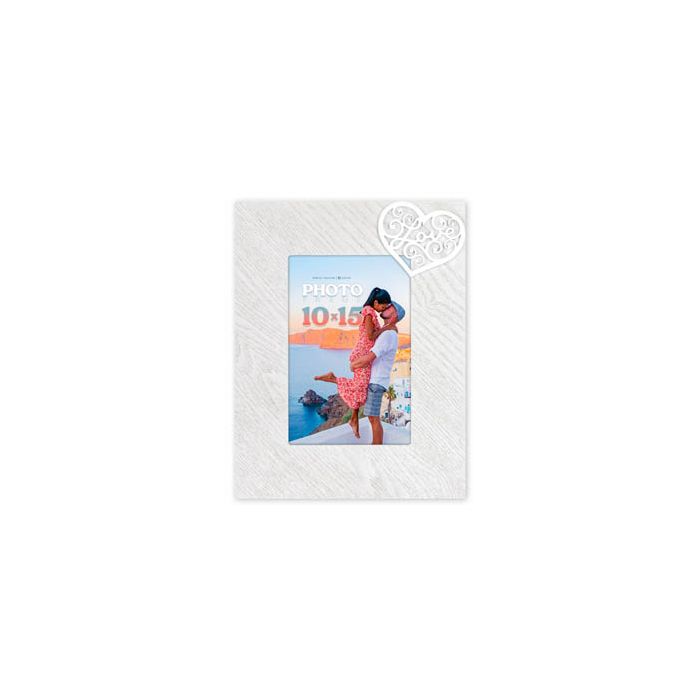 Ervaar het plezier van een uniek vormgegeven fotolijst, de Zep Fotolijst YN2746 Ginger 10x15 cm. Dit sierlijke exemplaar, ideaal voor 1 foto van 10x15 cm, voegt een vleugje elegantie toe aan zowel huis als kantoor. De Ginger houten lijst in wit en refl kleur onderscheidt zich door de decoratieve print en 3D hartvormige decoratie op overlappende vlakken, compleet met 'LOVE' letters. Dit thema van liefde maakt het niet alleen perfect voor persoonlijke herinneringen maar ook als verrassend cadeau. De totale afmetingen van de lijst, inclusief rand, zijn 17 x 22 cm.