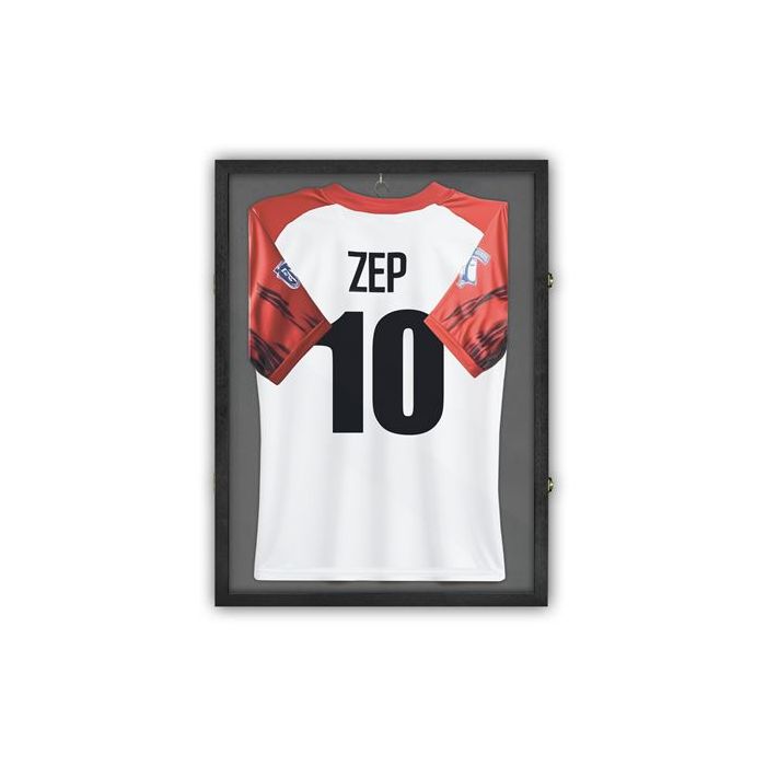 Met dit pakket laat je sportshirts echt spreken. Dankzij het royale formaat presenteer je je shirt mooi strak en volledig zichtbaar, zonder dat het opgepropt oogt. Ideaal voor een gesigneerd shirt, een bijzondere clubeditie of een persoonlijke sportherinnering die je elke dag wilt zien. De zwarte lijst geeft een krachtig, modern contrast waardoor je shirt extra opvalt, terwijl de naturel uitvoering juist zorgt voor een rustige, warme uitstraling waarbij kleuren en details prachtig tot hun recht komen.