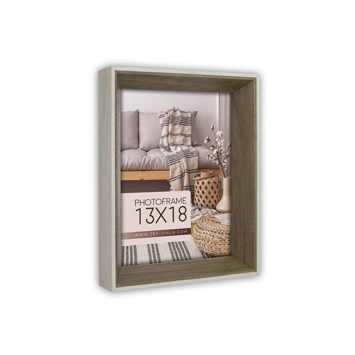 De PZB46 Scott Brown 10x15 cm van Zep Italia is dé manier om jouw favoriete herinneringen in stijl weer te geven. Deze enkele fotolijst is perfect voor een foto van 10x15 cm en straalt een bijna schilderij-achtige allure uit, dankzij het naar binnen lopende kader. Met een lichtgrijs buitenkader en een donkerbruin houtmotief aan de binnenrand, biedt deze lijst niet alleen bescherming maar ook een trendy afwerking. Met totale afmetingen van 12x17 cm, inclusief het frame, past hij perfect op elke plek. Het robuuste MDF-kader staat garant voor duurzaamheid en stijl.