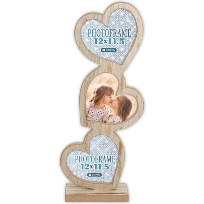 Laat je mooiste momenten extra spreken met de Zep RE333 Frida 3x12x11,5 cm (13x40 cm). Deze sfeervolle fotolijst bestaat uit drie hartvormige kaders die speels boven elkaar zijn geplaatst. De lichte houtlook en romantische vormgeving maken dit een echte blikvanger op tafel, kast of dressoir.