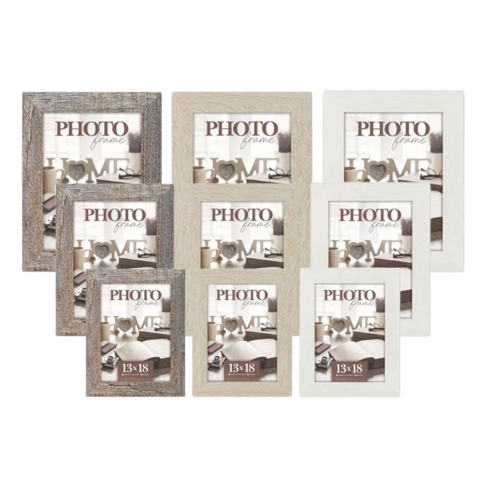 De fotolijsten in dit pakket zijn geschikt voor foto’s in de formaten 10x15 cm, 13x18 cm, 15x20 cm en 20x30 cm. Door het combineren van verschillende maten en stijlen ontstaat een dynamisch maar rustig totaalbeeld. Alle lijsten zijn voorzien van helder glas met hoge lichtdoorlatendheid, zodat kleuren, details en contrasten optimaal zichtbaar blijven.