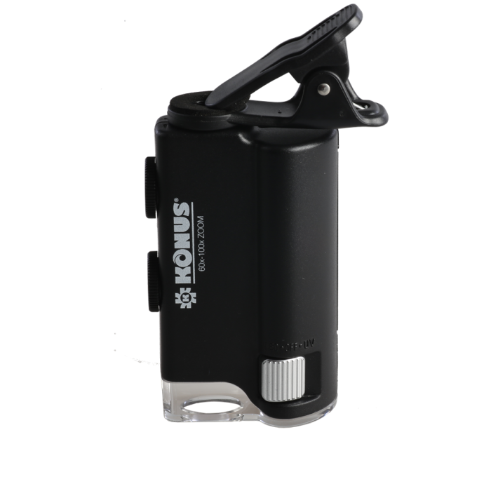 Ontdek de wereld om je heen met de Konus Konusclip 60x-100x – een compacte, hoogwaardige handmicroscoop die je overal mee naartoe neemt. Dankzij zijn krachtige vergroting en heldere LED-verlichting, gevoed door 3 AAA-batterijen, sta je altijd paraat om de kleinste details te onderzoeken, of je nu thuis bent of buiten op ontdekkingstocht gaat.