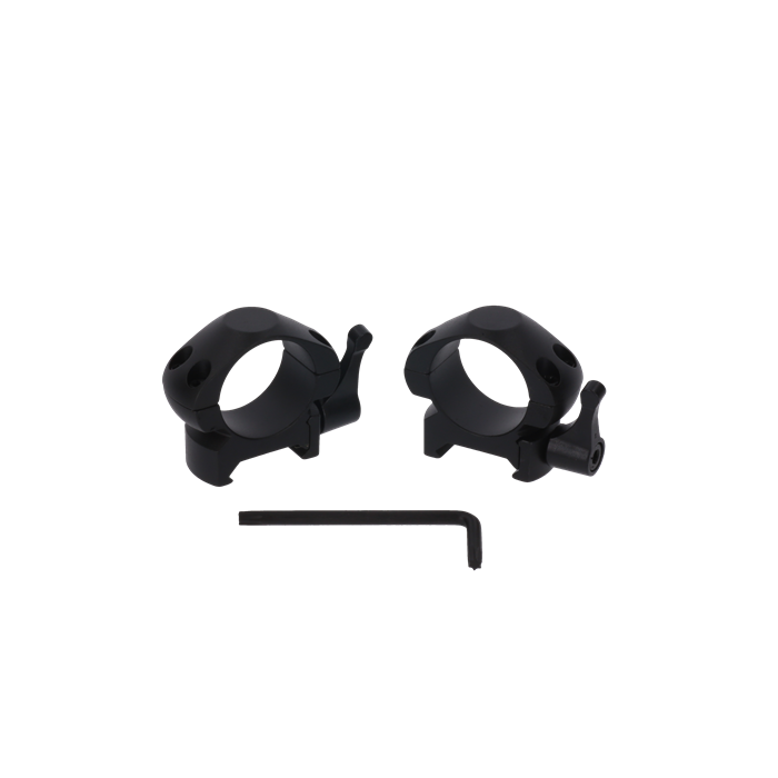 Om deze montageringen in gebruik te nemen, begin je met het losmaken van de bovenste ringhelft van de onderzijde. Draai de ringklem linksonder los, plaats het geheel op de gewenste rail en zet het vast. Nu plaats je je richtkijker op de onderste helften van de ringen; bevestig de bovenste helften losjes en positioneer je richtkijker naar wens. Dankzij de handige hefboom is vergrendelen en ontgrendelen een fluitje van een cent. Verander snel van richtkijker of vervoer je kijker apart voor extra veiligheid. Denk eraan, de schroeven stevig aan te draaien met een kracht van 1,5 tot 1,8 Newtonmeter voor de beste grip.