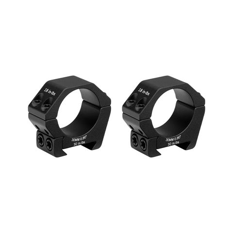 Deze montageringen zijn ontworpen voor richtkijkers met een 30 mm buismaat. Met de lage variant bevindt het midden van de richtkijker zich op 20,3 mm van de rail. Daarnaast zijn de ringen in deze serie verkrijgbaar in vier verschillende hoogtes zodat je altijd de juiste pasvorm vindt voor jouw richtkijker en wapen: